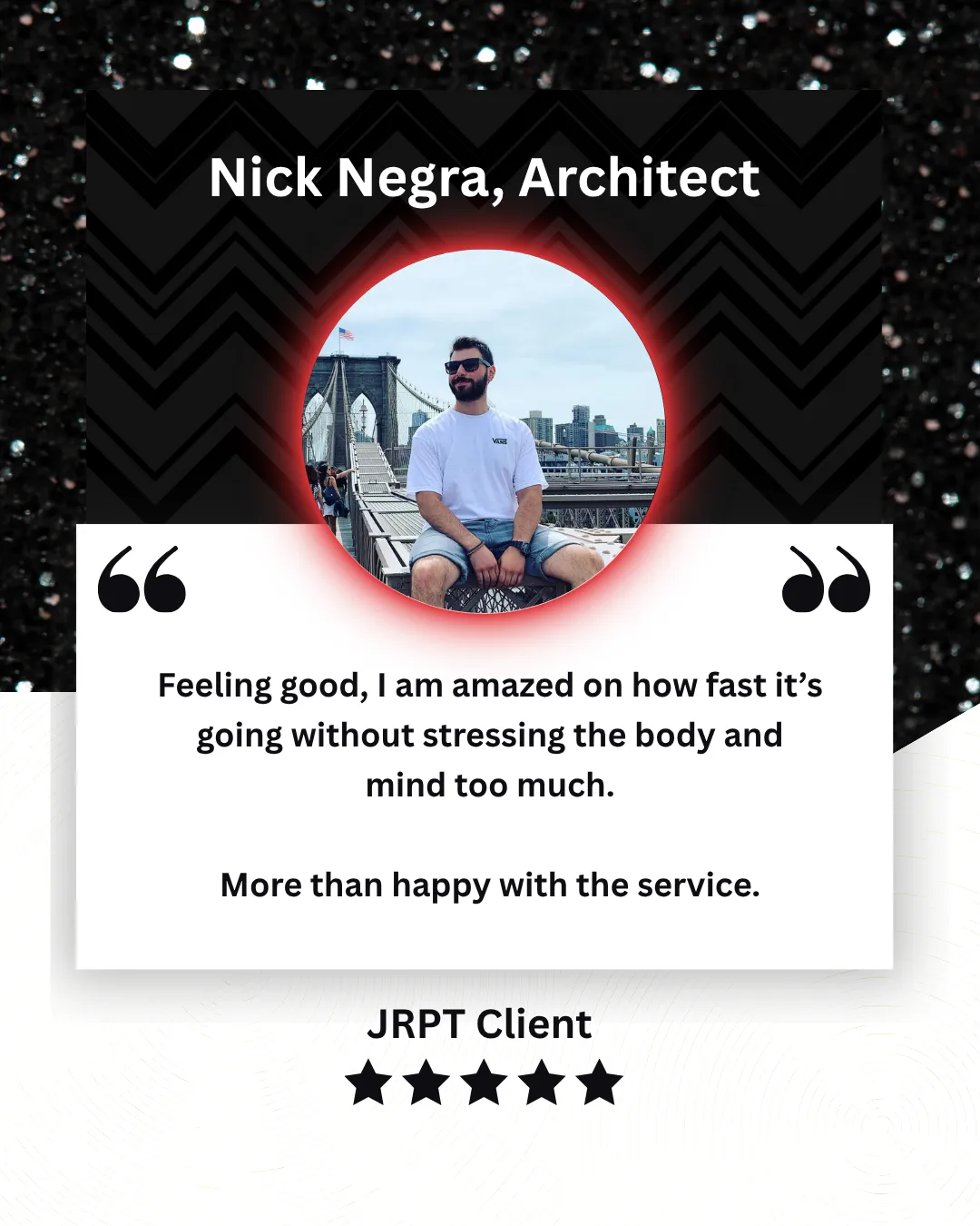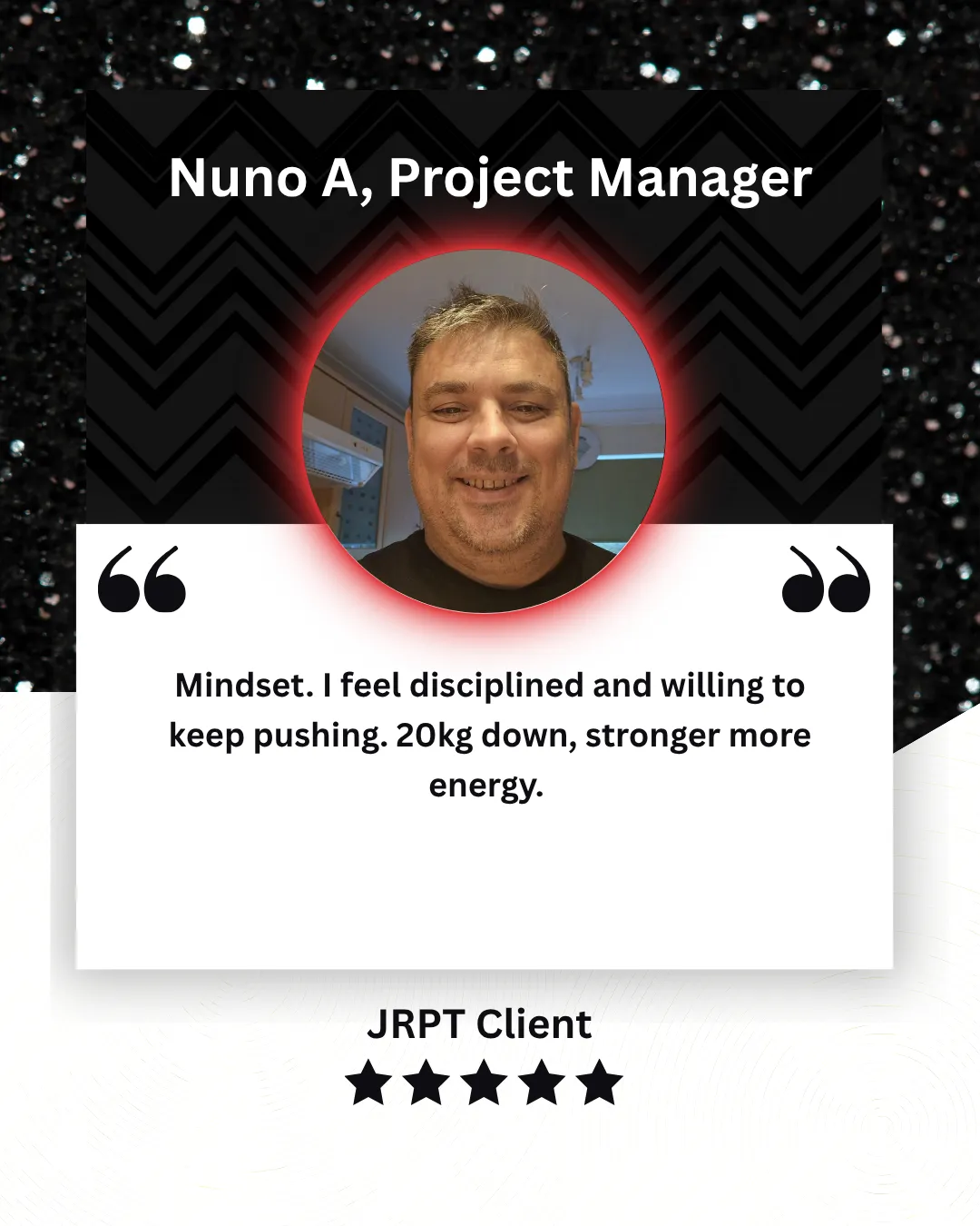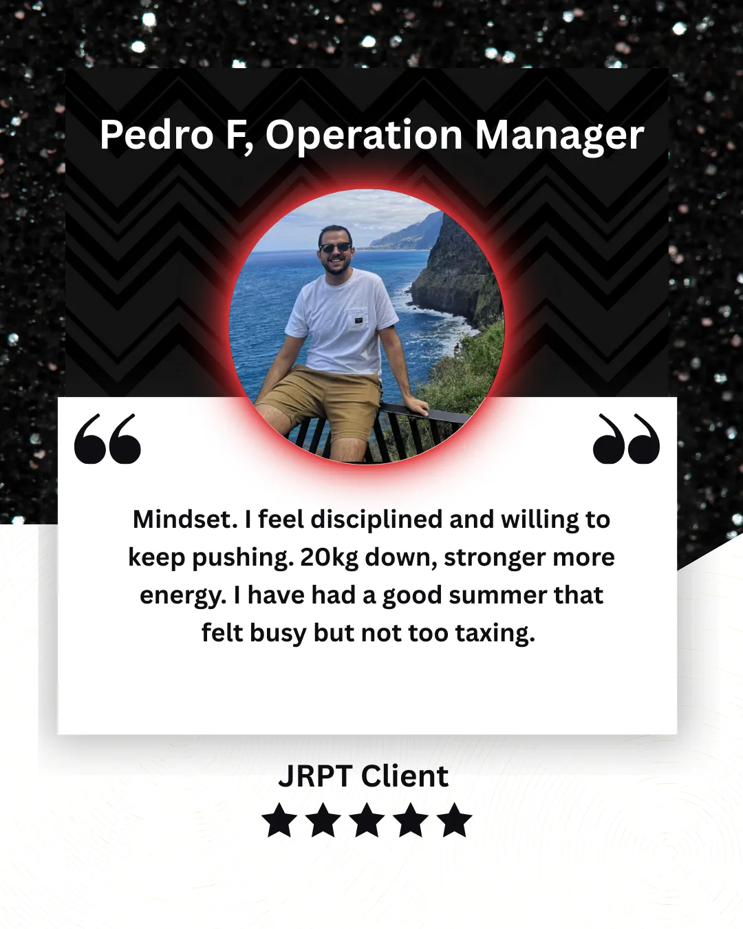 That's when I founded JRPT to help other people to reclaim their bodies, discipline, and identity with personalised coaching that goes beyond just a plan or seeing a PT. Something that people could learn, stick to and adapt not for months but decades.